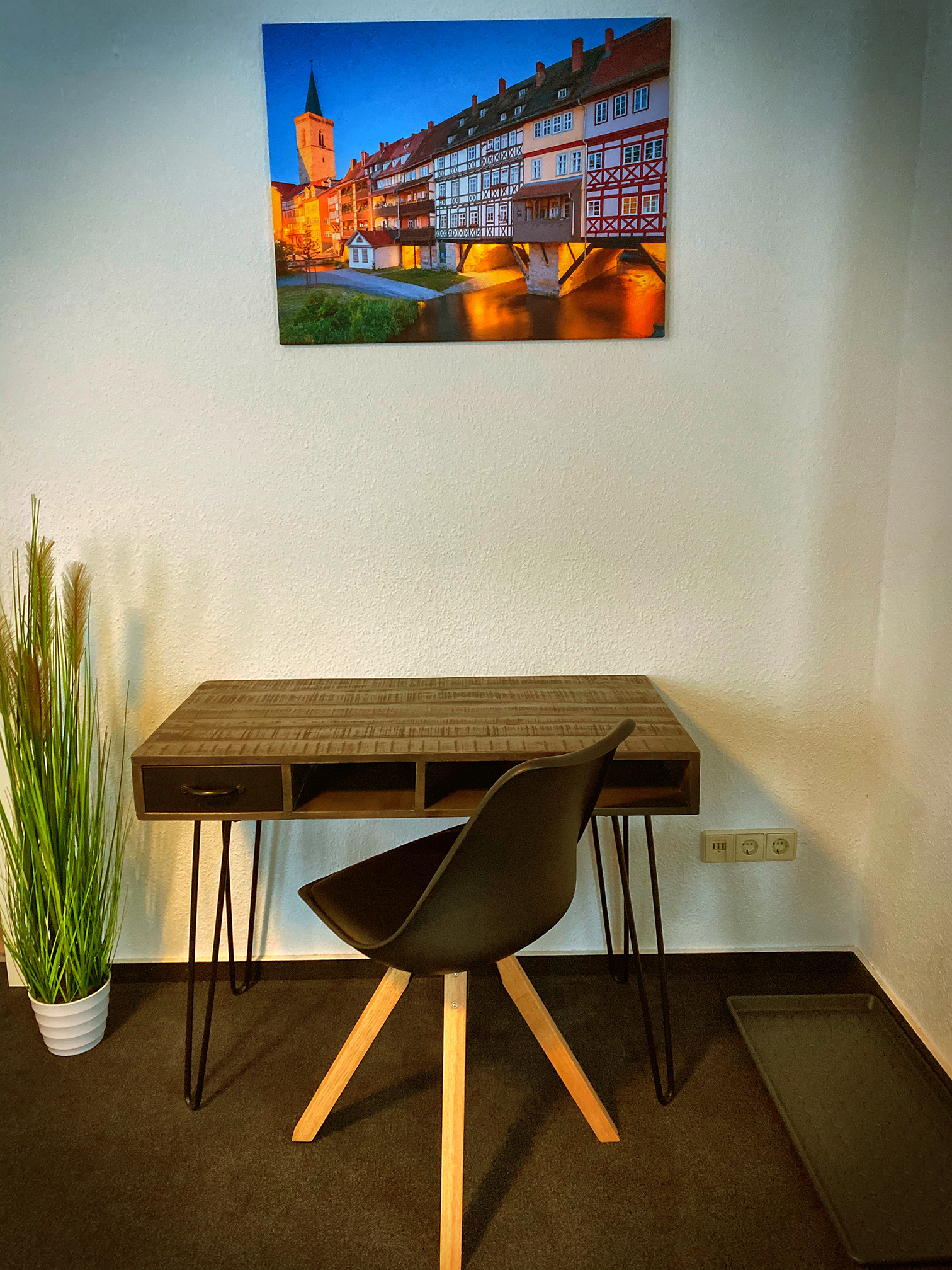 Der Hauptbahnhof ist gut zu Fuß oder mit dem öffentlichen Nahverkehr in wenigen Minuten zu erreichen. Der Flughafen Erfurt-Weimar befindet sich ca. 4km von der Unterkunft entfernt.