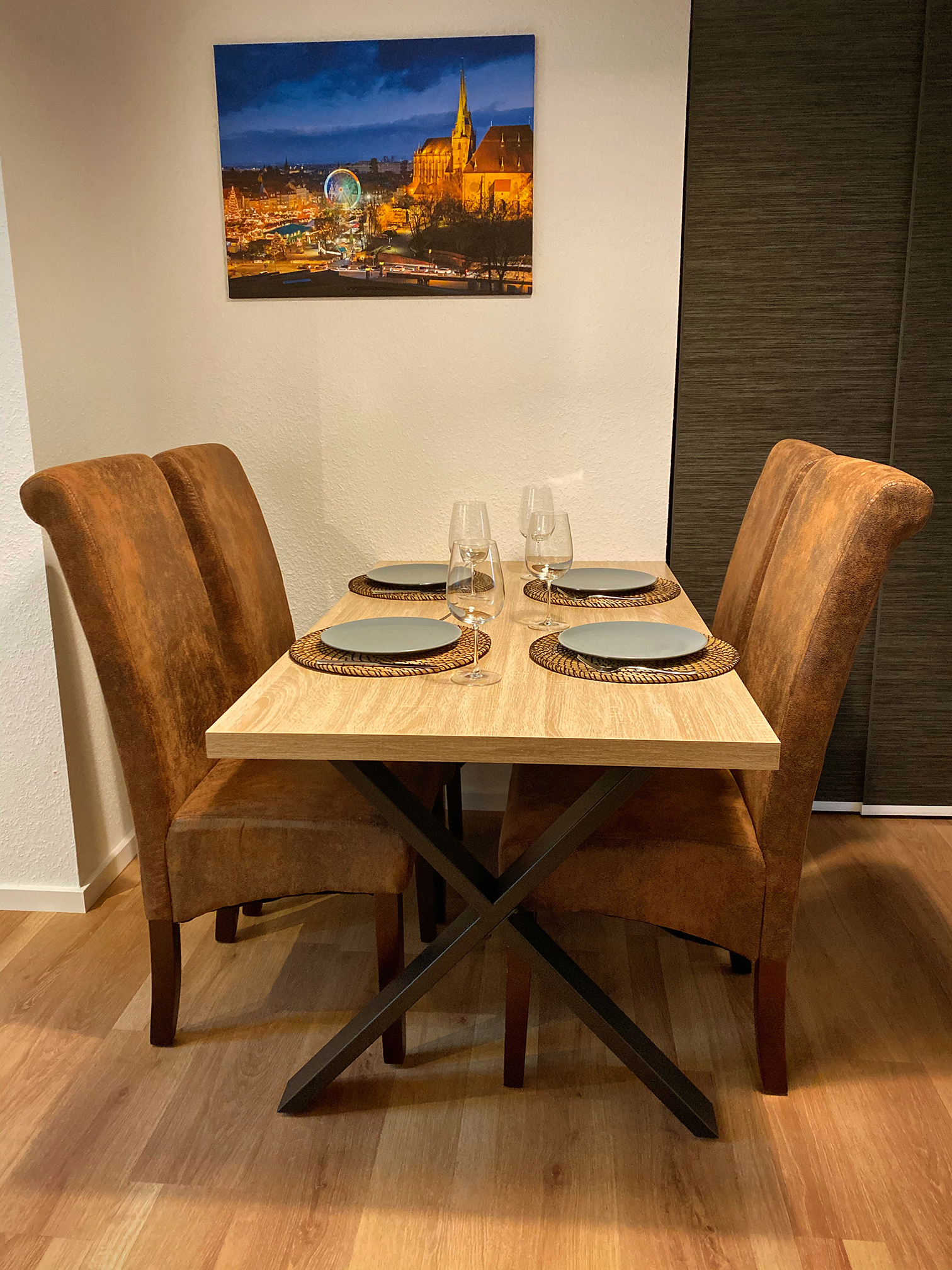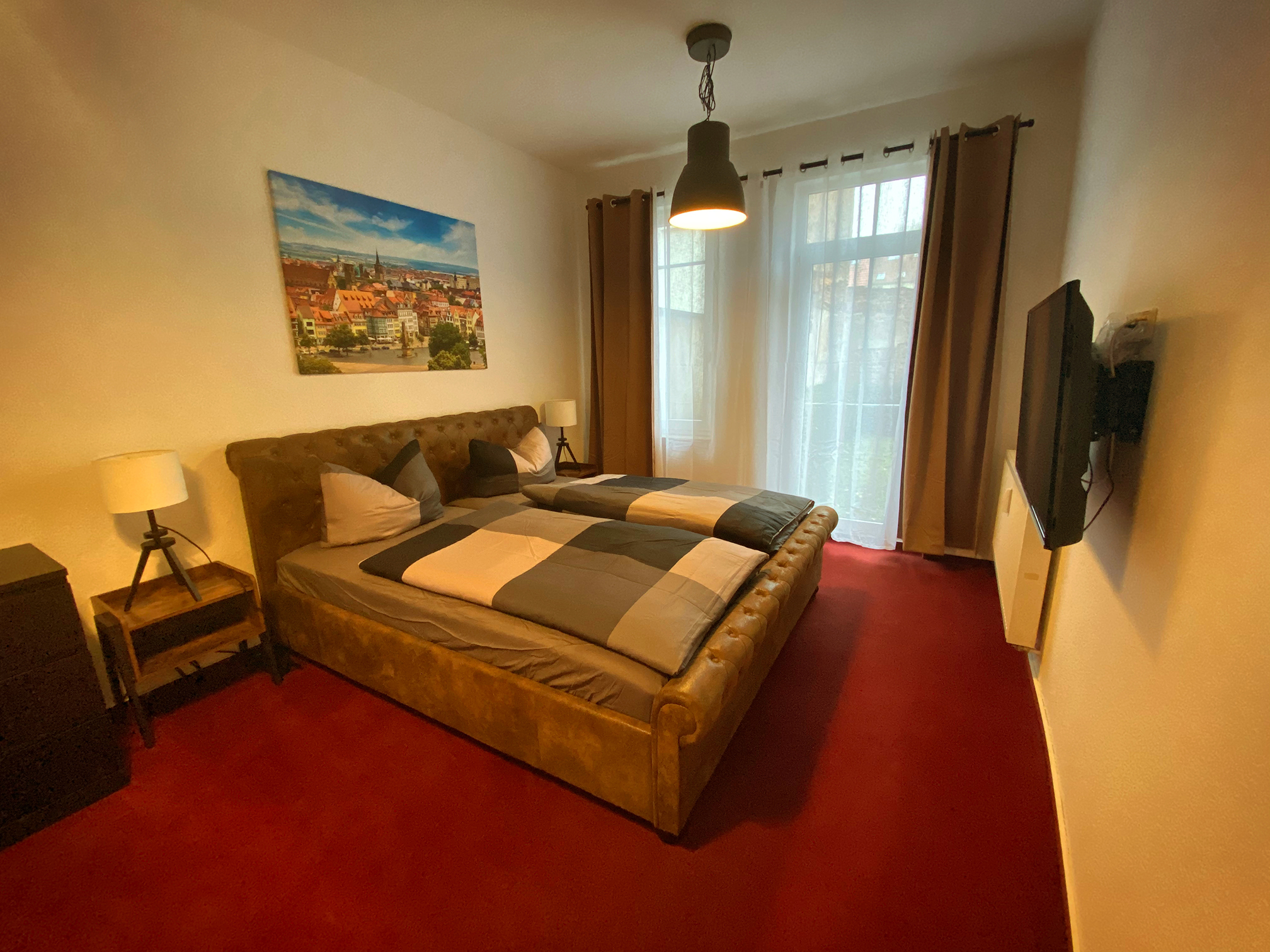 Unsere stilvoll eingerichtete Suite befindet sich nahe der wunderschönen Erfurter Altstadt. Auf 75qm können bis zu 4 Personen übernachten und 2 Schlafzimmer sowie ein geräumiges Bad mit Dusche nutzen. Weiterhin gehört eine komplett ausgestattete Küche zur Suite, in der Sie ganz privat Ihre Mahlzeiten zubereiten können. Ein direkter Zugang zum Hof ermöglicht Ihnen während des Aufenthalts das ungestörte Genießen der Sonne.